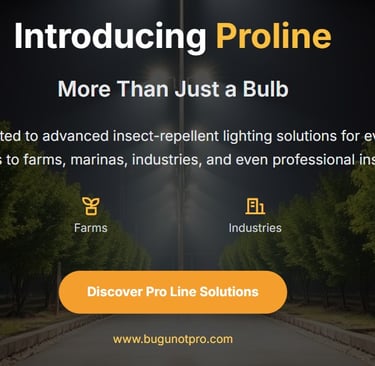 Born from smart-lighting expertise, our technology has been trusted in agriculture, hygiene, and industrial LED solutions. While many so-called repellent bulbs offer only minimal effect, Bug U Not® delivers proven performance — actively blocking insect approach and creating a truly safer, cleaner, and more enjoyable environment.